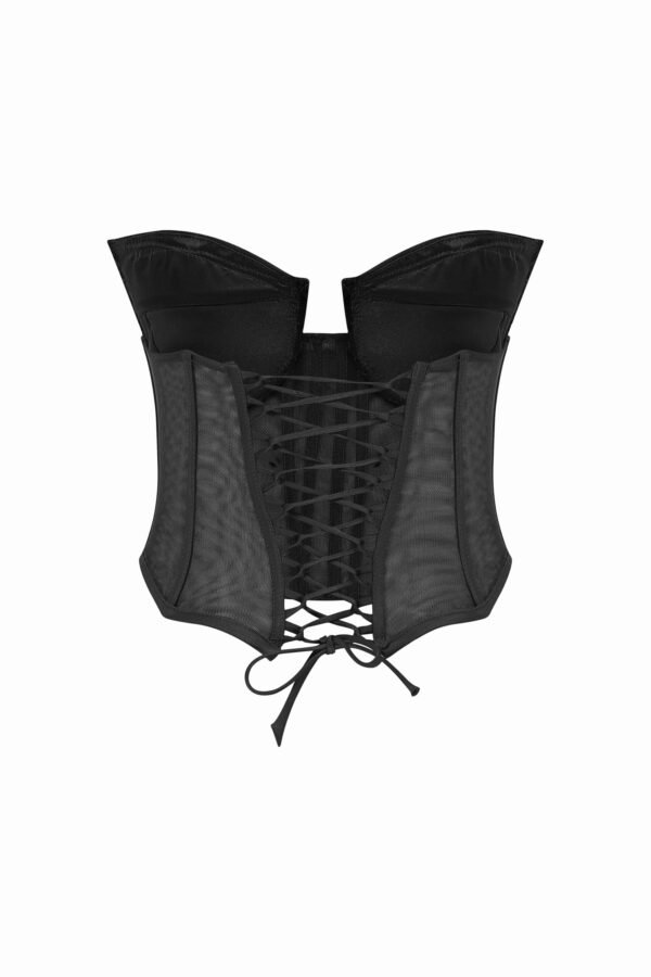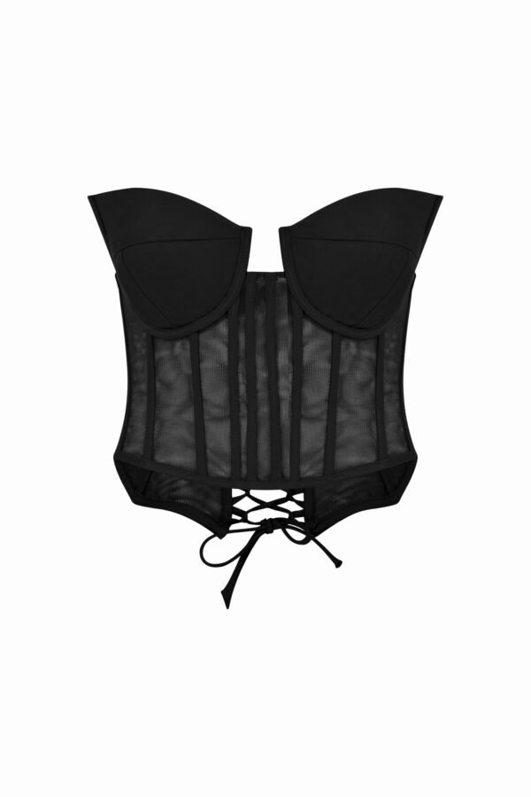 Transparan tül ve korse balenleri ile çalışılmış göğüs kısmı kaplı Arkadan bağlamalı büstiyer