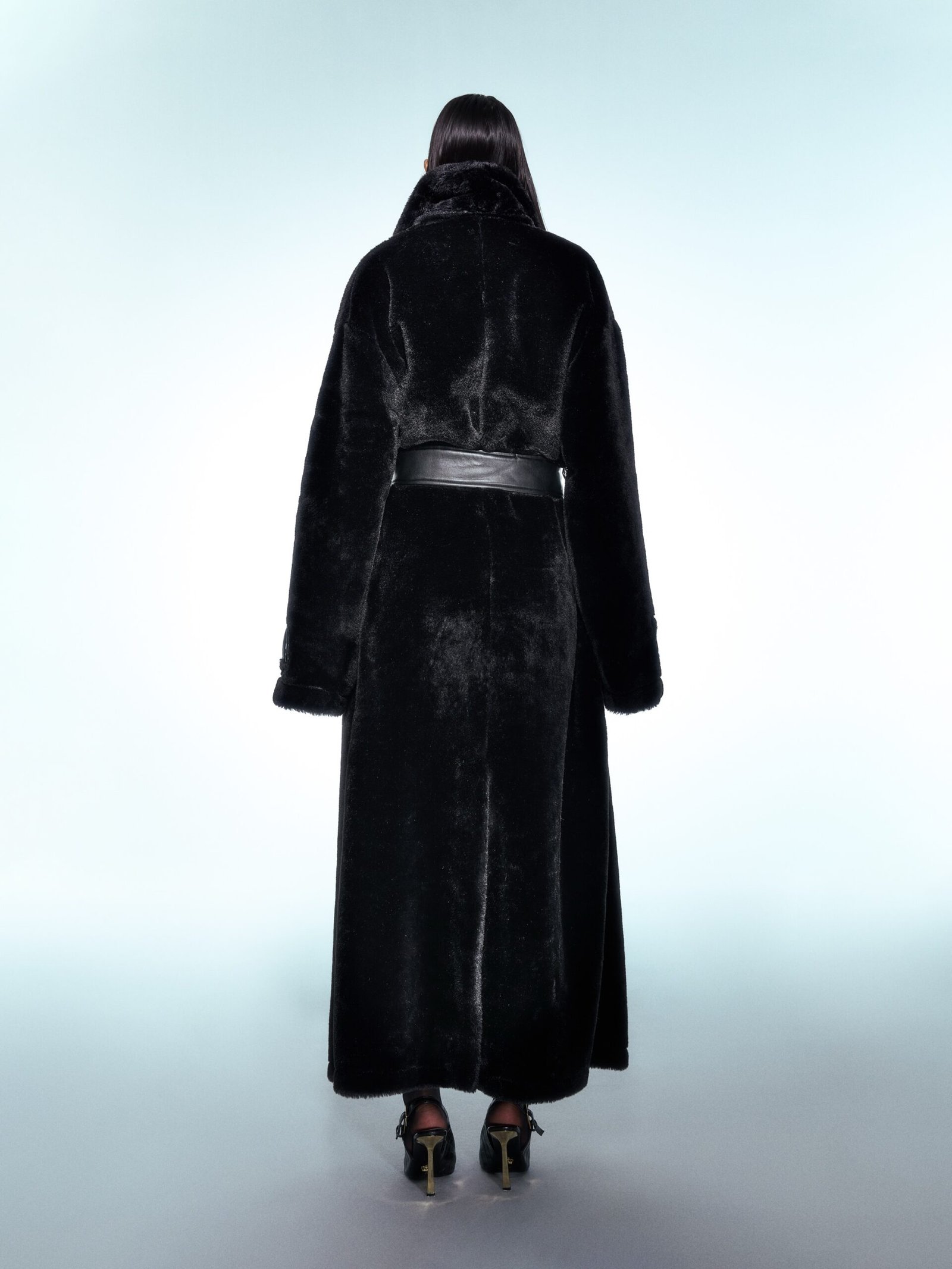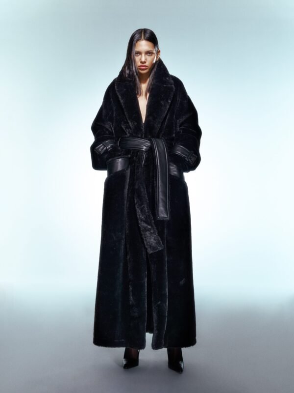 Oversize kalıptır Belden kemer detaylı kol manşetleri ayarlanabilir metal çıt çıt detaylı Faux kürkten üretilmiştir İçi deri ile kaplama yapılmış üzeri kürk işleme yapılmıştır
