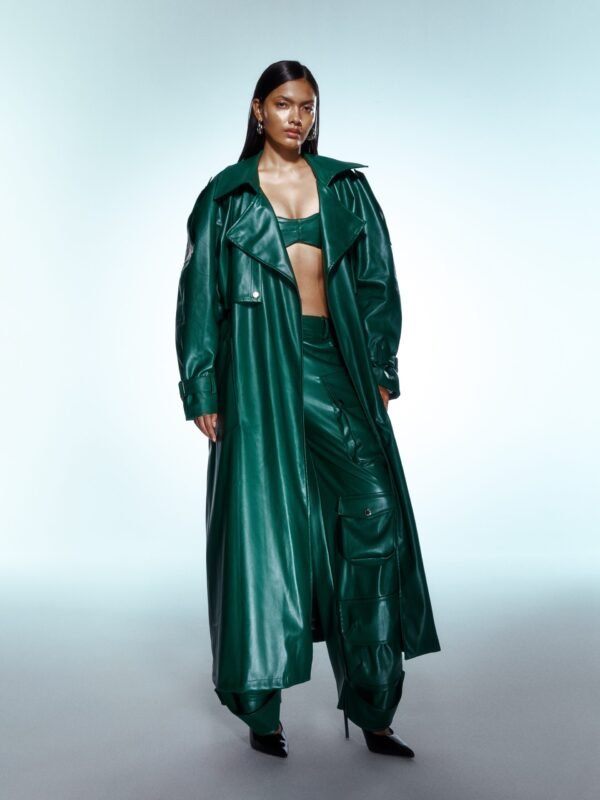 GATSBY FAUX LEATHER TRENCH COAT GREEN