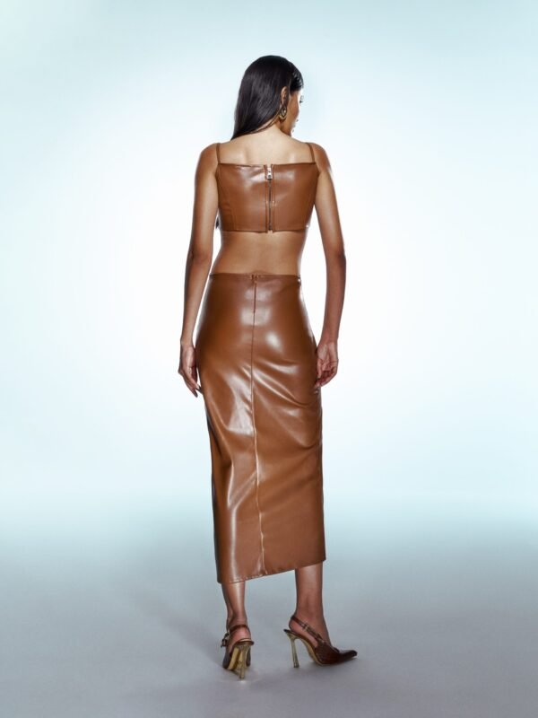 Likralı birebir deriden üretilmiştir  34-36-38-40 beden aralığıdır Arkadan gizli fermuar detaylı Önden yarım yırtmaçlı Midi boy elbise Lütfen sipariş verirken bedeninizi belirtiniz