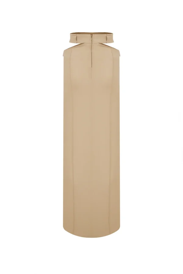 Yüksek bel yanlardan dekolteli kemerli maxi boy