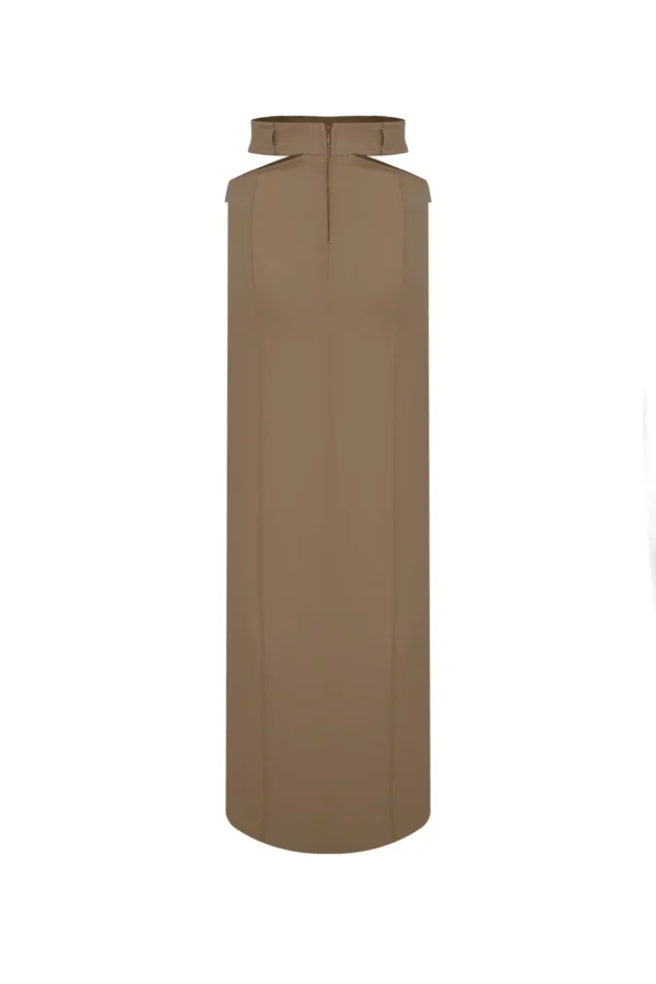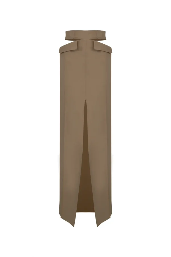 Yüksek bel yanlardan dekolteli kemerli maxi boy