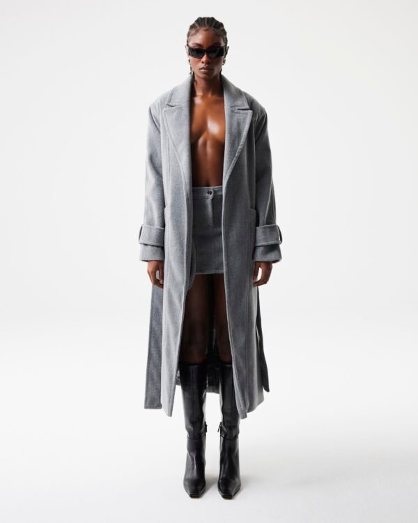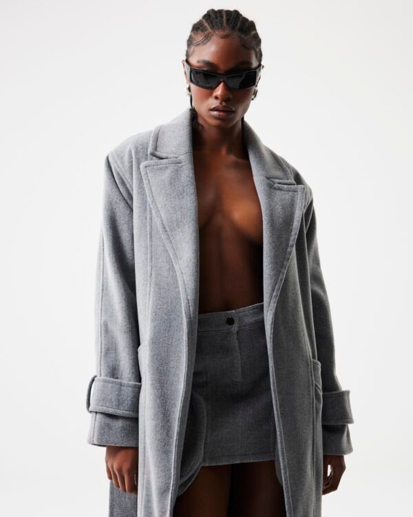 Parma kumaştan üretilmiştir Oversize kalıp Ceket Boy 1.25 cm Kol apolet çıtçıtlı Belden kemerli bağlanabilir Maxi boy Arka yırtmaçlı İç astarlı