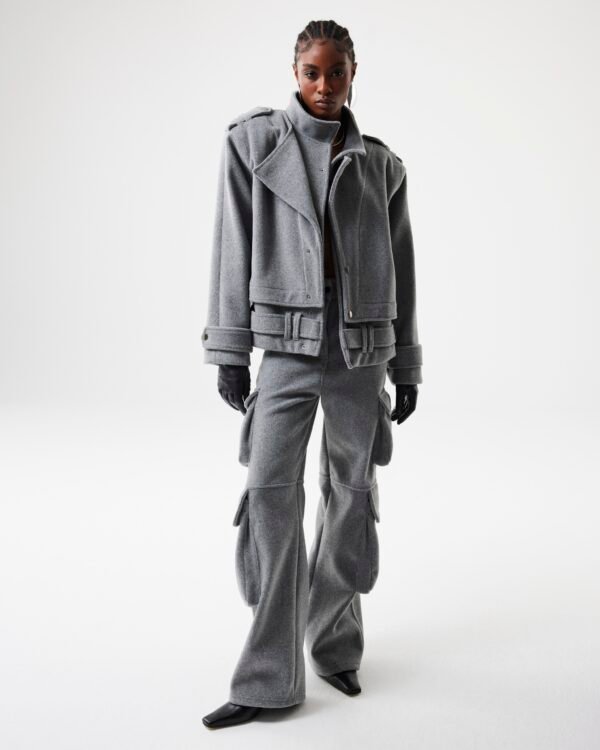 Parma kumaştan üretilmiş Yanlardan cepli Fermuarlı pantolon